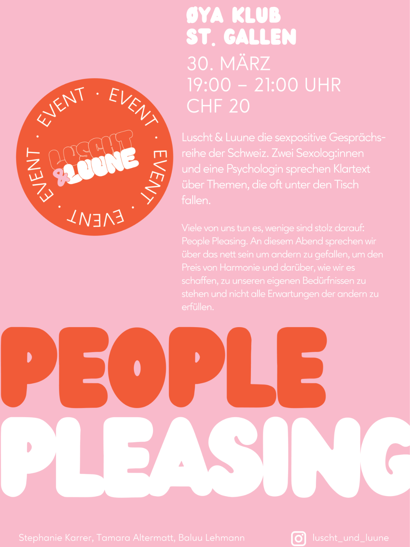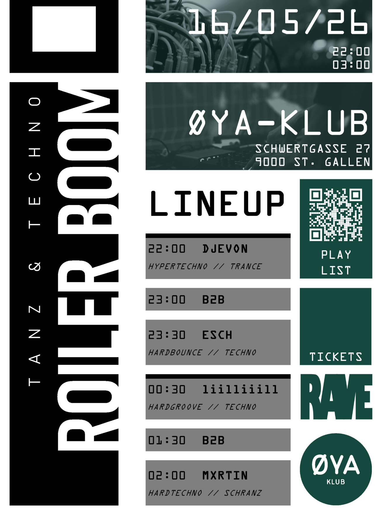 Reservationen bitte per Telefon an 071 244 23 43, Mail an home@oya-bar.ch oder direkt hier.